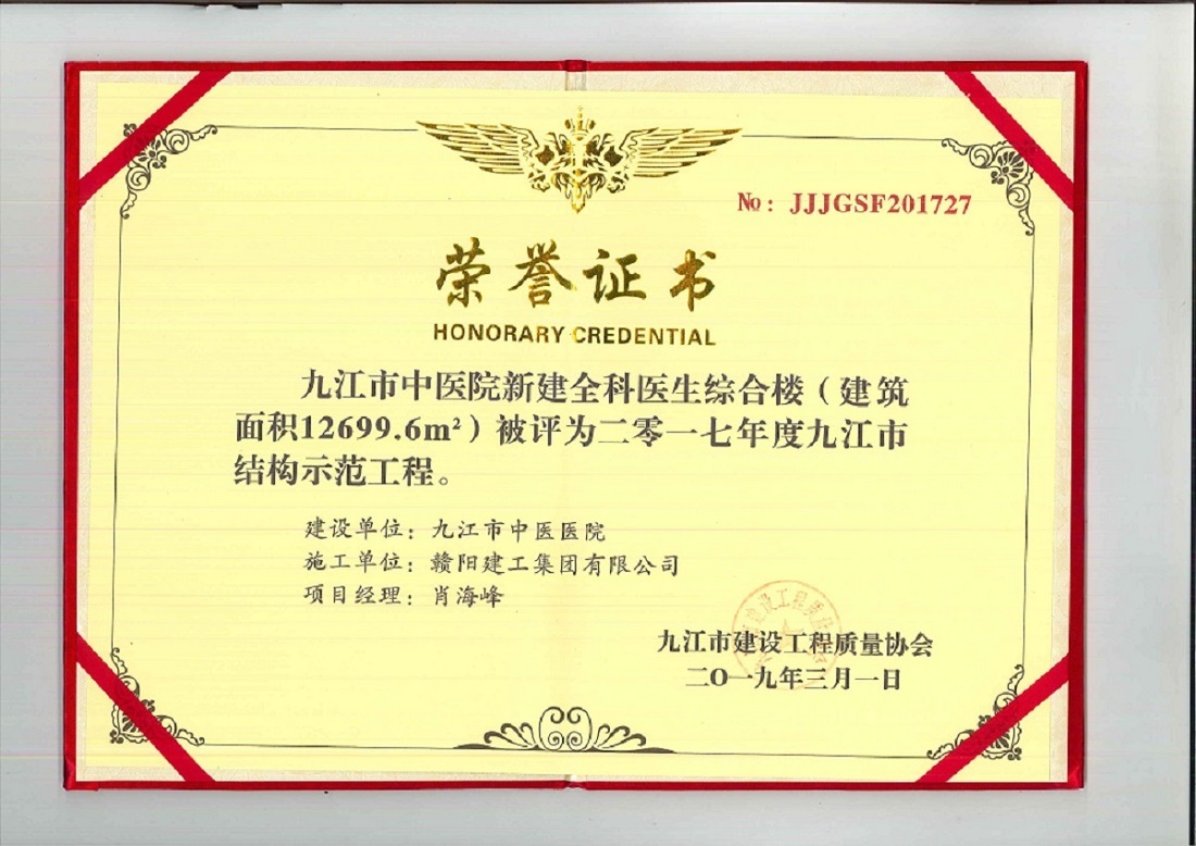 热烈祝贺赣阳建工集团荣获2017年度九江市结构示范工程!